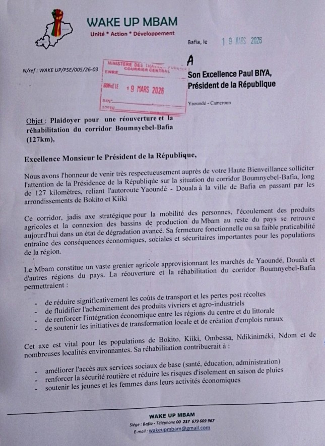 Monsieur le Président de la République, Paul Biya, cette lettre, vous l’avez sans doute déjà reçue. Mais l’a-t-on seulement lue ? Ou est-elle classée dans le dossier « plaintes de ressortissants » qui dort dans les sous-sols d’Etoudi ? Le mouvement Wake Up Mbam vous tend une perche. Il vous offre, dans un langage trop policé, une vérité crue : le Mbam est en train de crever sous le poids de l’indifférence.